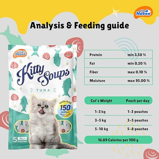 Novee Kitty Soups Tuna for Cats - 5 Tubes x (Each 35 G)