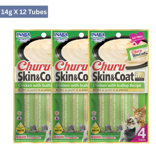 Inaba Churu Skin & Coat Tuna with Scallop Recipe Cat Treats (14gx4)