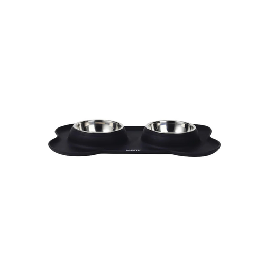 M-Pets DUET Stainless Bowls With Silicone Mat - Black