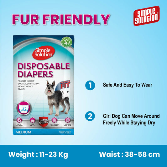 Simple Solution Disposable Dog Diapers – Pack of 12 Pads