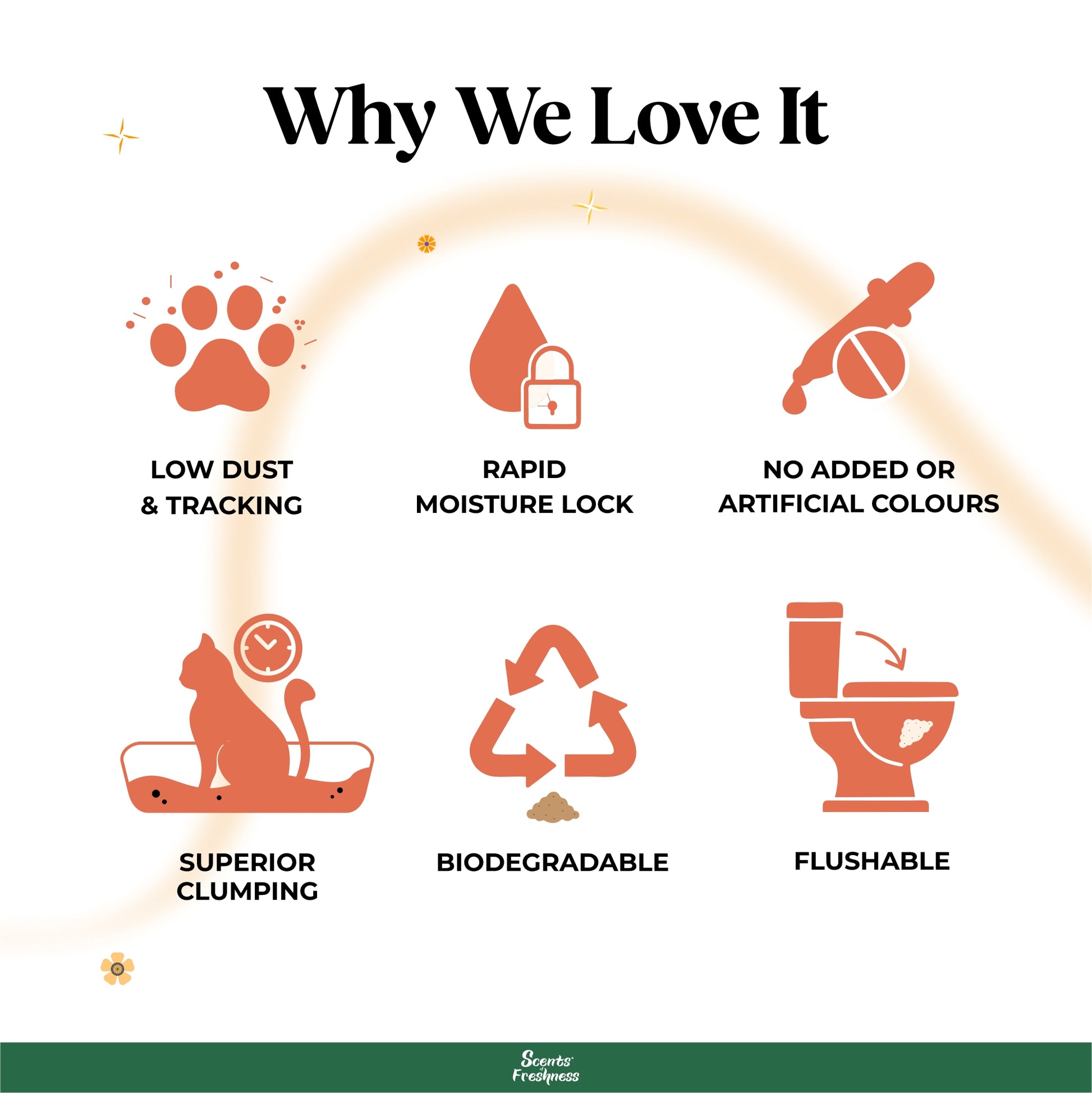 - Flushable & Biodegradable: Made from 100% plant-based materials and completely sewer-safe, this cat sand litter allows for easy, eco-friendly disposal that’s safe for your home and kind to the environment.
