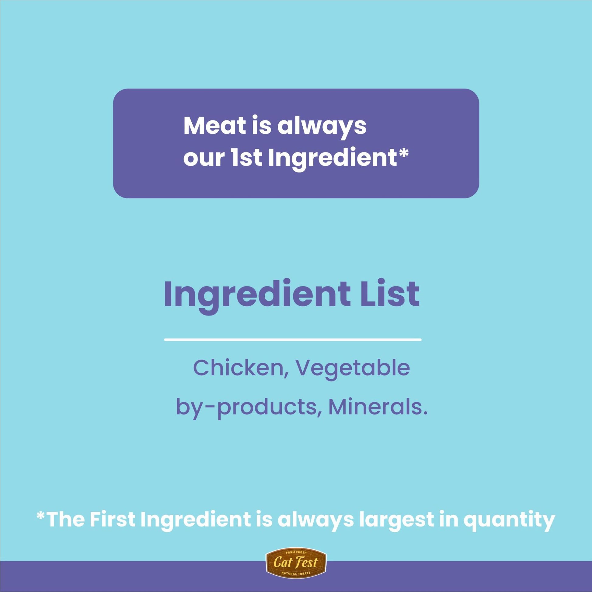 Protein is a vital part of any pet's diet, and CatFest Meat Sticks Chicken are packed with high-quality protein to support your cat’s overall health. The first ingredient is real, human-grade chicken, which provides essential amino acids that promote strong muscles, healthy skin, and a shiny coat. Protein is also vital for energy and supporting an active lifestyle, making these cat treat ideal for cats with higher energy needs.