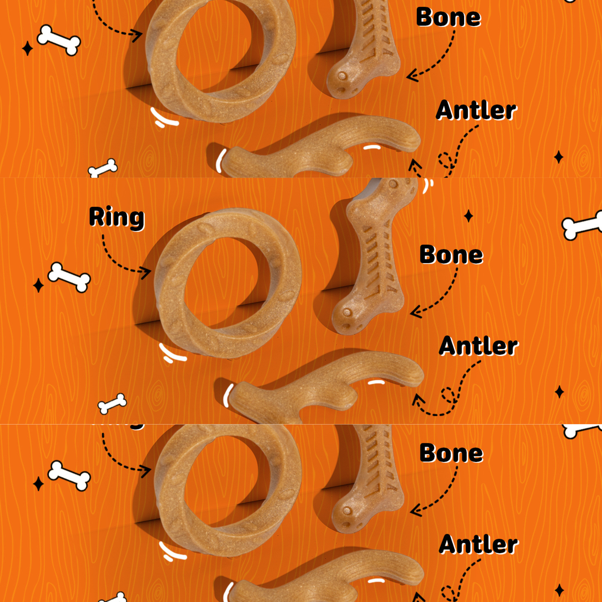- Natural Pine Wood Scent: Infused with a delightful natural pine wood scent, these chew toys captivate your dog's attention, providing a stimulating sensory experience during playtime.