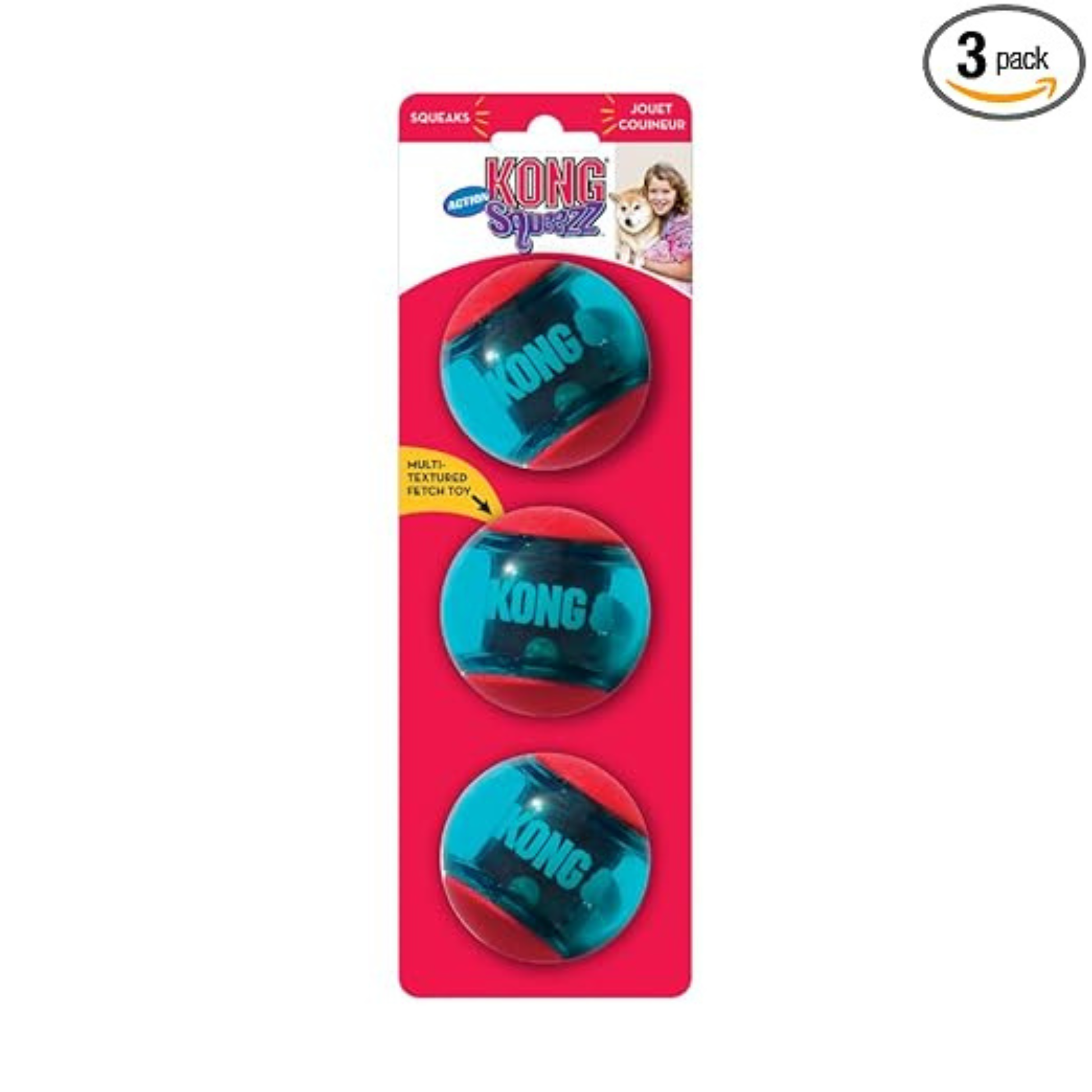 KONG Squeezz Action Ball – Bouncy, Textured & Squeaky Dog Toy - Pack of 3