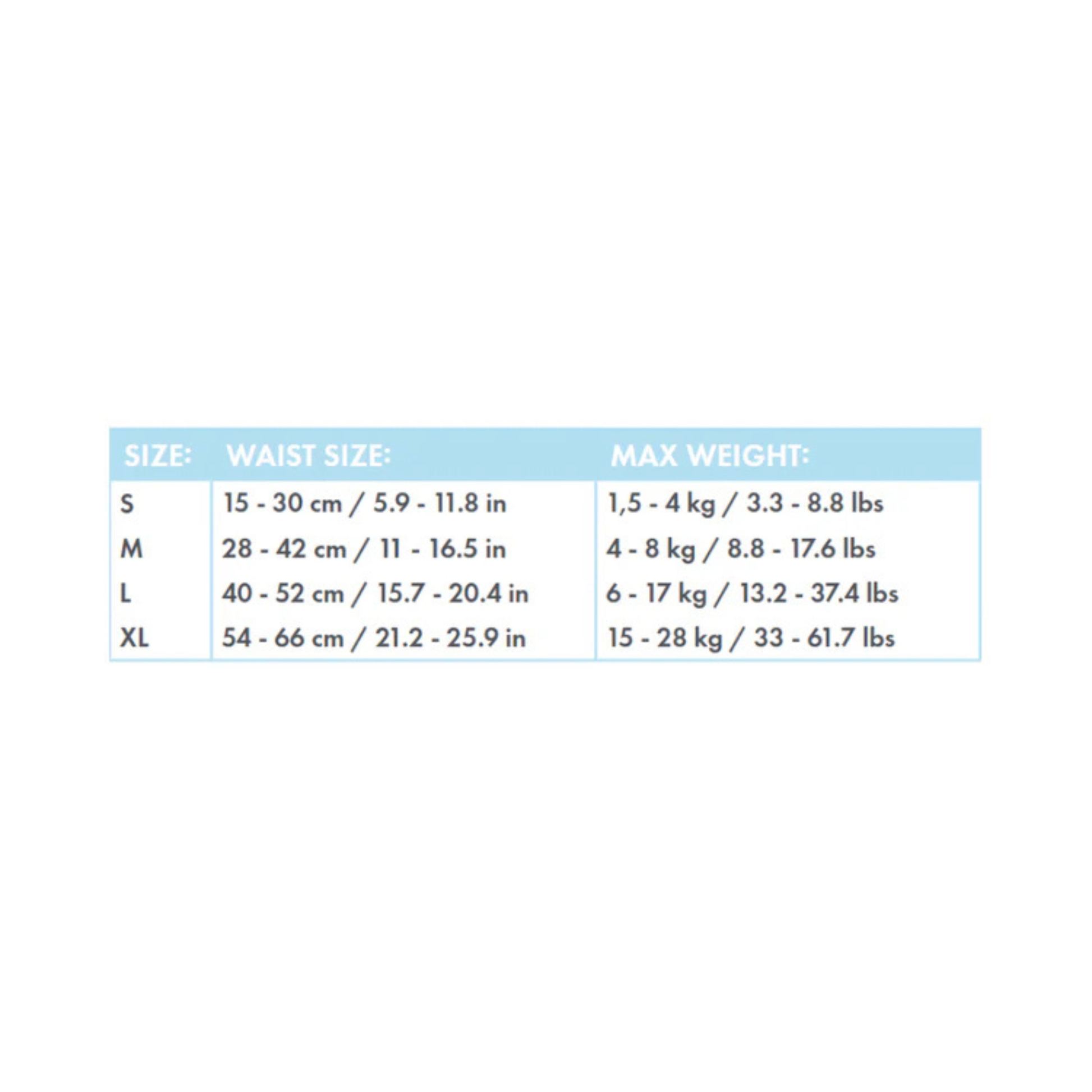 XL: 54 - 66 cm/15 - 28 kg