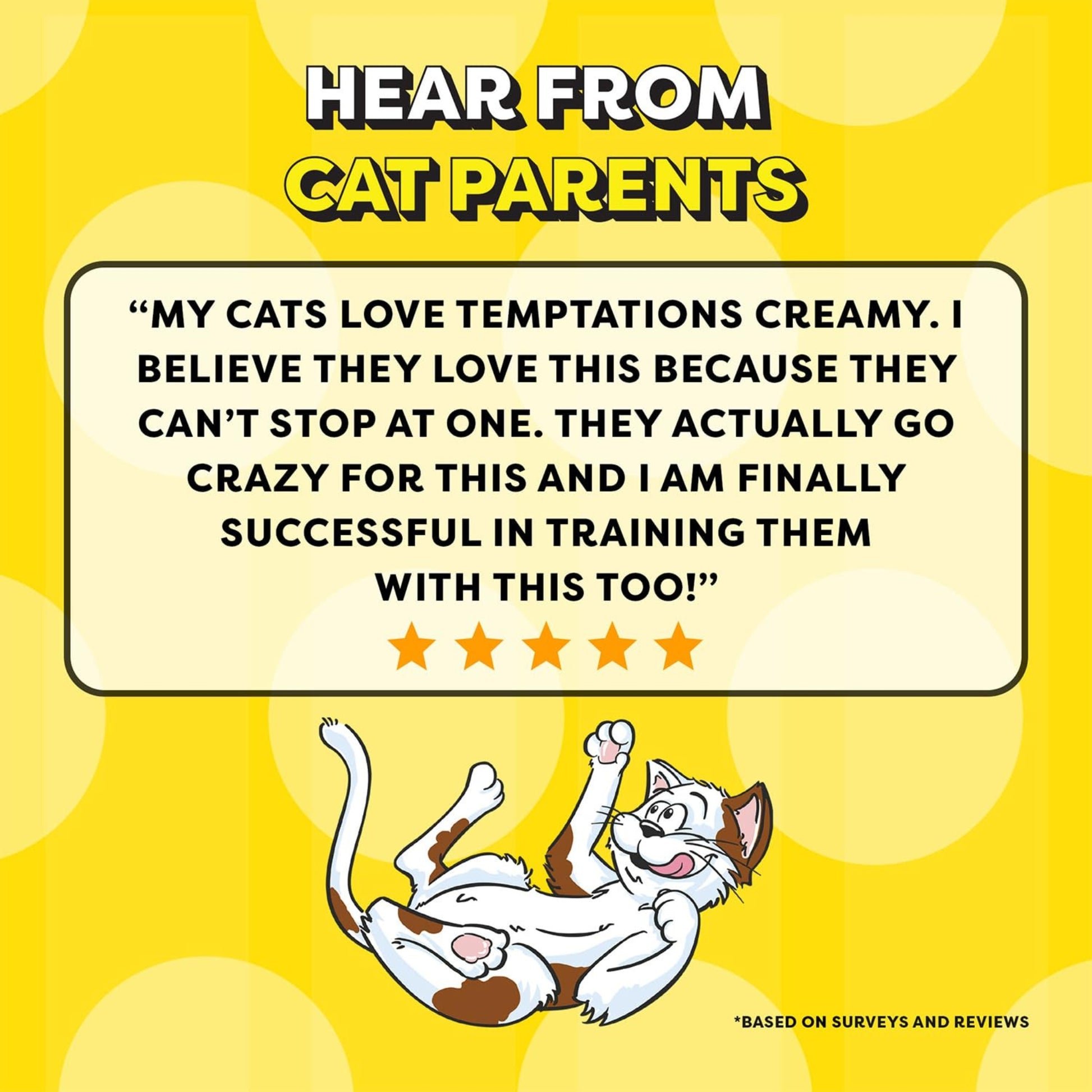 - IRRESISTIBLE CAT TREATS: Delight your cat with lickable Temptations Creamy Purrrr-ée treats that offer a smooth texture and flavour they’ll love